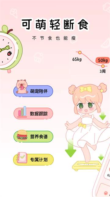 你不是一个人在战斗!断食的同时,你将拥有一些可爱的萌宠,可以喂养萌宠,还能解锁新的萌宠装扮,更能DIY专属房间。让萌宠伴你轻松享瘦!