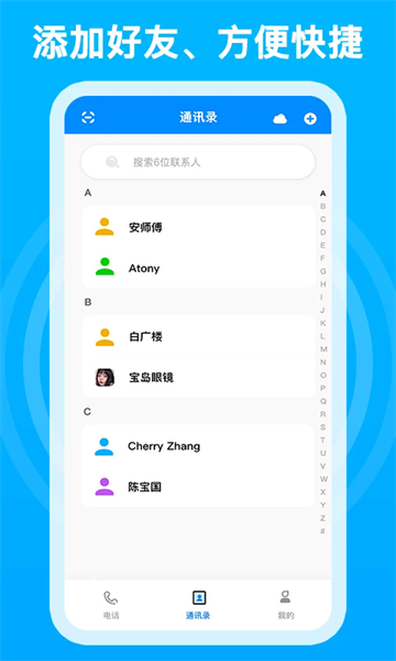 【免费电话】 免费打电话,无需对方安装网络电话或联网。