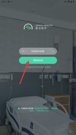 2、输入手机号后点击【获取验证码】,等待接收验证码。