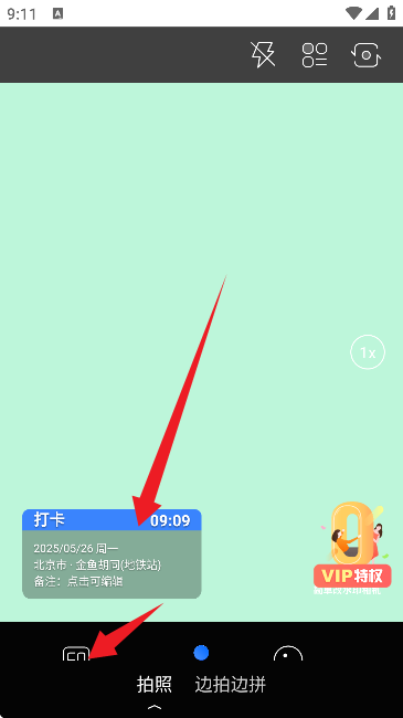 4、然后就是拍照界面了,如图所示,拍照的同时会一直有水印样式跟随。