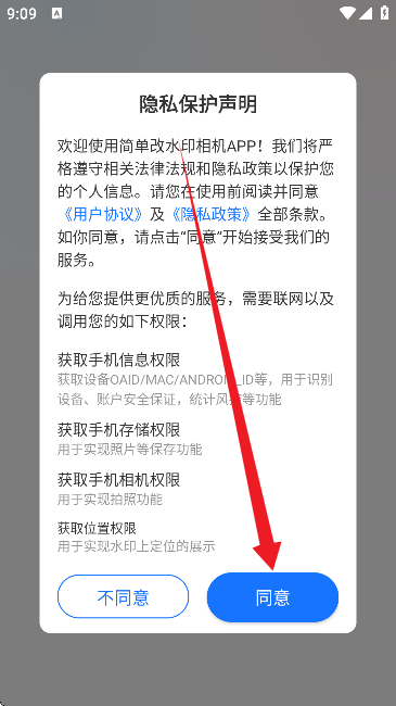 2、首先请同意用户协议和隐私政策;