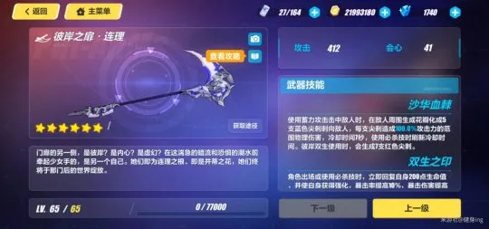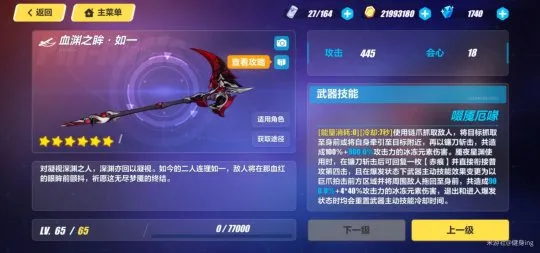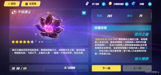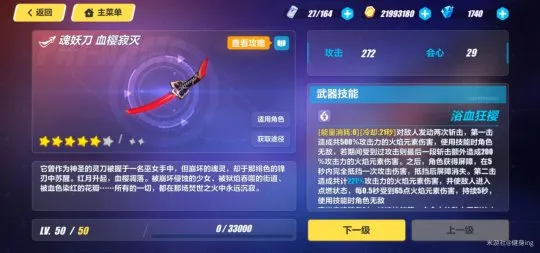 主C的武器,肯定要优先升满,升满后遇到火伤天就好打多了。