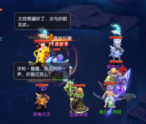双角出征,寸草不生!在激活羁绊技能后,金角银角这一对好兄弟将配合得愈发默契、毫无破绽!金角会点名并弱化对战方伤害最高的单位,大幅弱化其伤害,并额外提升对其伤害,回合末还会进行追击,“针对”得明明白白!银角大王则会在金角造成击败后使用月影摇光进一步打出可观面伤,令对手积重难返!