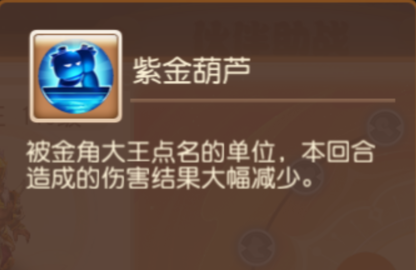 金角大王:被金角大王点名的单位,本回合造成的伤害结果大幅减少。