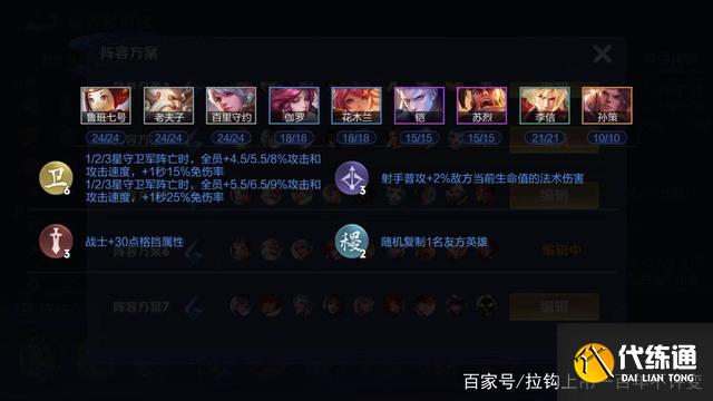 不过这个阵容非常的吃魏国令旗,如果没有的话,稷下令旗也可以将就,但是强度就差了不少。因为这样的话,就必须下一个稷下,再上一个魏国。而稷下的几个英雄都挺关键的,而魏国剩下的在这个阵容里都是边缘角色。