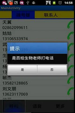 还在为联系人特别多不好找到某人么?试试语音拨号器吧,对他说出联系人的姓名或手机号,自动帮您搜索并拨打,节省时间。该拨号器保留了原始的功能,可以进行手动的拨打,保留您的使用习惯。