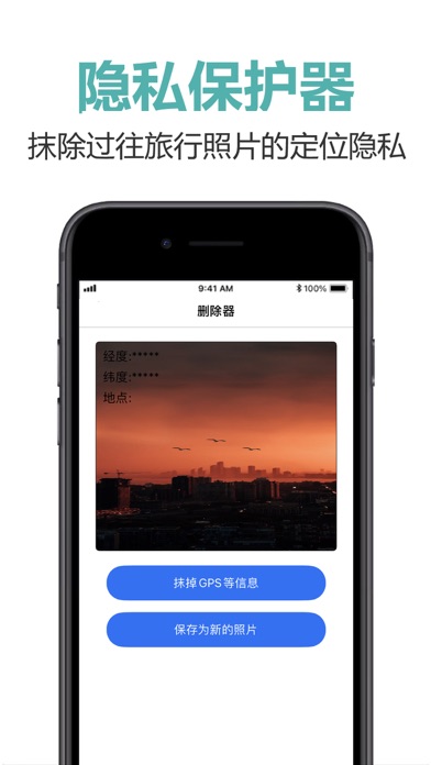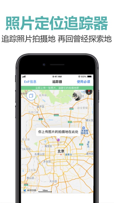 追踪照片拍摄地点,再次追寻曾经旅行中的绝美记忆地点 删除照片GPS信息,您的隐私保护器 在地图上生成旅行足迹,将曾经到过的地方串联起来 App’s Subscriptions: —————————————— *6-Monthsly VIP (USD$23.99/6 months) This subscription auto-renews at the end of each 6 months term at USD$23.99,unless cancelled 24 hours in advance.Payment will be charged to iTunes Account at confirmation of purchase.Subscription automatically renews unless auto-renew is turned off at least 24-hours before the end of the current period.Account will be charged for renewal within 24-hours prior to the end of the current period, and identify the cost of the renewal.Subscriptions may be managed by you and auto-renewal may be turned off by going to your Account Settings after purchase.Any unused portion of a free trial period, if offered, will be forfeited when you purchases a subscription to that publication, where applicable. *Monthly VIP (USD$7.99/month)) This subscription auto-renews at the end of each month term at USD$7.99,unless cancelled 24 hours in advance.Payment will be charged to iTunes Account at confirmation of purchase.Subscription automatically renews unless auto-renew is turned off at least 24-hours before the end of the current period.Account will be charged for renewal within 24-hours prior to the end of the current period, and identify the cost of the renewal.Subscriptions may be managed by you and auto-renewal may be turned off by going to your Account Settings after purchase.Any unused portion of a free trial period, if offered, will be forfeited when you purchases a subscription to that publication, where applicable. 隐私政策 https://shimo.im/docs/xXvkyDgc888KdHpR/ 使用条款 https://shimo.im/docs/RvtpdqJKQdyHQpYt/1.Support more localized languages: Japanese, Korean, Malay, Russian, French, German, Italian, Portuguese, Arabic, Thai, Vietnamese. 2.Fixed bugs