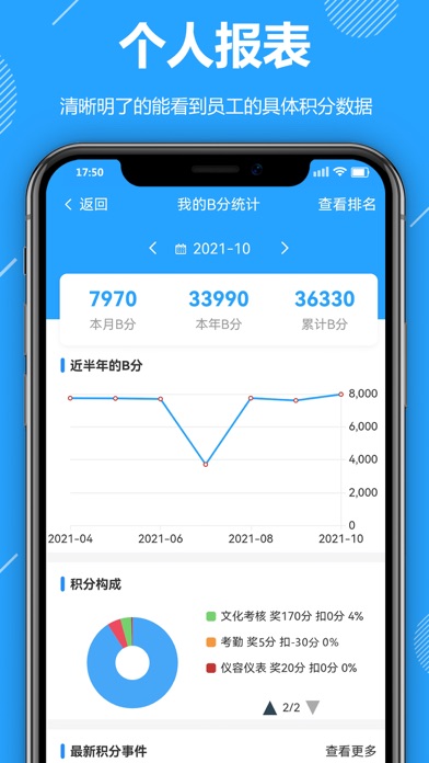功道云积分制绩效考核是量化员工工作,通过奖扣分来提升员工执行力,帮助企业降低人力成本、管理成本,提升工作效率的一款积分制管理软件。 合作企业有中国中铁、中国民航、鞍钢集团、松鼠AI、东莞科协、建设银行浙江分行、宿迁市第三医院、方正证券等超过30000+企业都在用功道云积分制管理软件! 功道云积分制管理目前获得28项技术专利,11年专注于软件开发、积分制、薪酬设计、股权设计、涵盖了200多个行业,服务30000+企业。功道云竭诚服务好每一个企业用户,用实力创造价值,让天下没有难做的企业! 功道云积分制绩效考核软件有哪些功能? 【考勤自动奖扣分】上班打卡排名奖分、晚下班排名奖分,新增考勤打卡的积分明细;修正加班时长计算(按班次设置自动计算)新增假期余额(允许加班时长转换为假期或加班费)数据统计更加自动化,新增考勤月报表查看明细,自动生成排班表,功能实现考勤自动化。【积分排名,即时激励】 快速设置积分规则,员工可申请积分、根据积分事件进行奖扣分,通过积分排名激励员工主动完成工作任务。 【多平台对接】 功道云积分制绩效考核软件已经接入钉钉、企业微信,企业无需改变现有的沟通方式,已上线PC、移动端(APP、微信端、钉钉、企业微信)为企业提供多平台管理的选择。 【积分大数据分析】 自定义查看公司、部门的积分数据情况,个人数据阶段性分析,详细了解员工工作状态的变化,基于数据分配,为员工搭建公平公正的平台。 【目标追踪】 全览员工目标绩效,工作轻重有序,进度清晰,表现好坏即时记录。 【奖扣分即时通知】 奖分扣分即时通知,待办事项提醒处理,给管理者设置打分任务。 【人才评选】 全面考核员工的工作、行为、能力,多维度评优,挖掘有潜力的员工。 【基于数据,分配更合理】 目标量化让个人参与完成公司目标,团队、个人的绩效一目了然,涨薪有依据,管理更轻松。 【系统技术支持】 系统采用云架构,基于SSL/TLS协议加密传输,行业标准加密算法,多机热备,实时备份,为用户信息数据安全保驾护航。 功道云积分制绩效考核软件可以解决企业哪些问题? 如何用积分制对员工实现薪酬绩效考核 奖金福利分配难的问题 建立以价值为导向的薪酬体系 培养员工良好的行为习惯,搭建企业文化 解决员工执行力不强的问题 解决企业招人、留人难的问题 解决分配问题 解决目标管理的问题 解决管理层执行力不强或者不执行的问题 落地企业的规章制度的问题 全方位调动员工积极性 ...... 怎么联系功道云客服: 1.拨打咨询热线: 400-6877-880 2.下载功道云注册,有专属客服对接1、优化了部分功能 2、增加okr目标管理 3、增加了现场管理功能