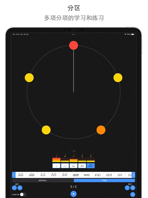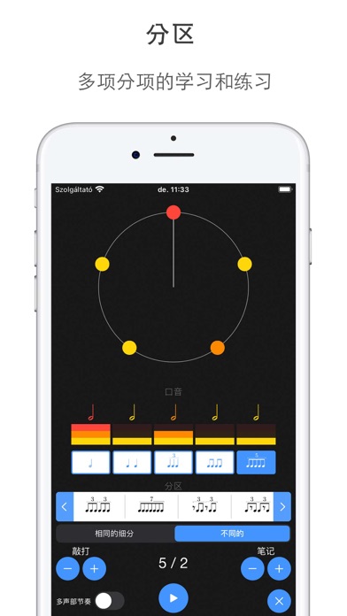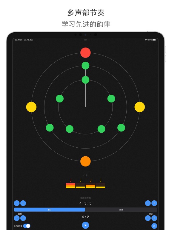 Poly节拍器是一款功能强大的节奏训练工具,适用于日常练习和舞台表演。它内置高精度录音室级别节拍引擎,并支持复杂节奏划分、复节奏、练习清单和自动训练功能。 支持创建三连音、附点音符和非常规节拍的复杂节奏模式。可为每一拍设置不同子节奏,保存常用设置并结合教练与自动训练模式使用,全面提升你的节奏感。 多种提示模式(声音、闪光、震动、视觉钟摆)确保你在嘈杂环境中也能精准跟拍,适合乐队同步。 “教练模式”会静音某些小节,锻炼你的大脑节奏感。“自动训练”模式则可自动调整练习节奏,提高你的节拍掌控力。 【免费功能】 • 无广告直观界面 • 支持90+拍号,节奏范围1~800 BPM • 10种节拍音 + 8种复节奏音 • 轻触设定BPM、动态重音、钟摆动画 • 闪光/震动提示(限iPhone) • 免费试用复节奏、子节奏、练习清单等功能 【专业功能】 • 40+子节奏类型,可按每拍独立设置 • 复节奏支持按拍/按小节叠加 • 可编程练习清单与设置 • 教练模式可设静音小节数 • 自动训练支持节奏自动变化与时间控制 非常适合鼓手、吉他手、钢琴家以及任何希望提升节奏能力的音乐人。此更新包含多个错误修复和性能改进。请尽情享受我们最新、最棒的应用程序版本。