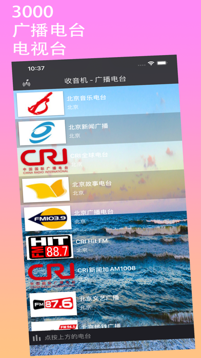 「收音机 - 广播电台」是一个用来收听AM、FM广播和电视的工具。收听全国各省、市、地区和县超过3000个的广播电台和电视台。包括全国几乎所有的广播电台和电视台,内容涵盖音乐、新闻、交通、财经、教育、故事、旅游等各个方面。让您度过轻松愉快的休闲时光。 特征: •来自中国各省、市、地区、县的广播和电视台; •收听超过3000个广播电台和电视台; •收听电视台,对,还可以听电视 •收听最好的广播电台和电视台; •使用微信,SMS,电子邮件共享; •按电台、电视台名称,类型,城市搜索; •在后台听; •通过Air-Play收听广播;体验提升和性能增强