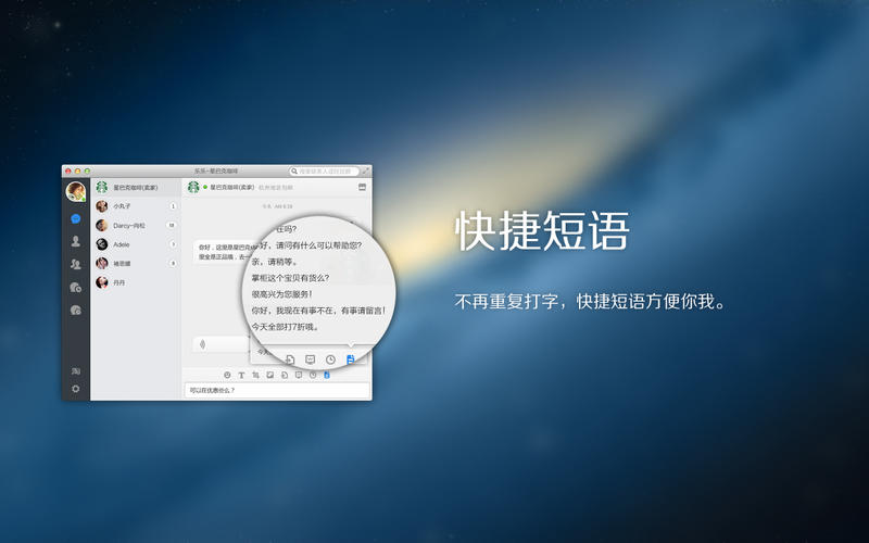 阿里旺旺苹果电脑版是由淘宝网专为Mac用户打造的一款淘宝购物即时通讯软件,阿里旺旺for Mac的设计是传统与创新的交融,我们追求轻量化的同时力求使用户体验达到最佳,减少不必要的元素,打破传统,让阿里旺旺更纯粹。在交互体验和视觉风格上与Mac更加协调,让用户感觉更亲密熟悉,就像是久而未见的老友,怀念、欣喜、感动。