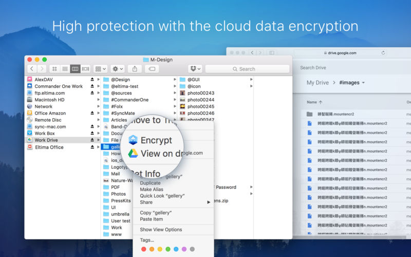 2.0版本扩展了CloudMounter功能到整个新级别!现在,您不仅能够通过Mac Finder直接访问在线服务器上的所有文件,还可以使用高端加密算法(AES256)加密它们。因此,如果你的帐户被盗,没有人可以访问你的个人信息。