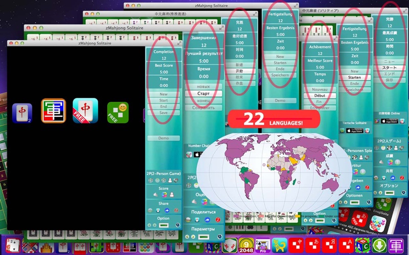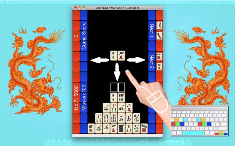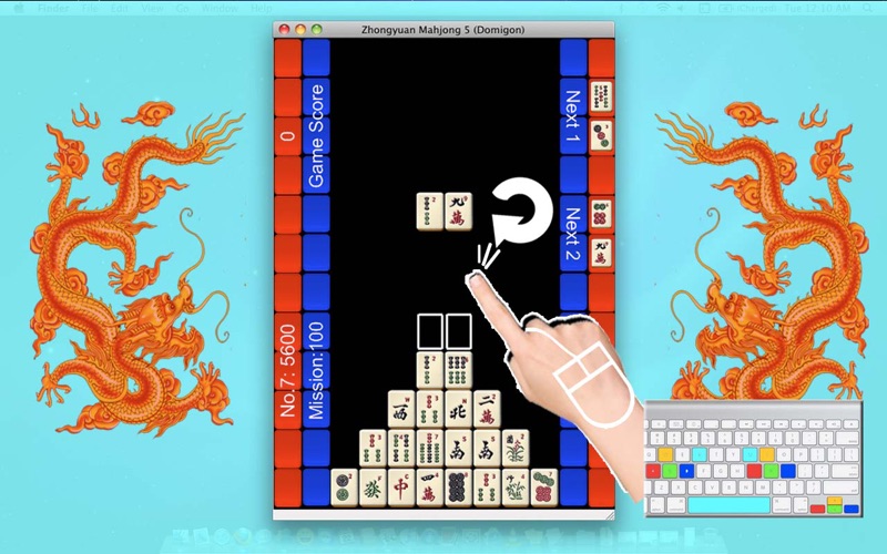 特别功能:你可以通过你iPhone / iPad上的同名游戏把你的成績登錄到Game Center! ******************************************************** Mahjong Domino = Mahjong + Tetris The most unique and fun game at Android, iOS and Mac OS! Video demo at homepage! *************************** 感谢查看中国方块,这是一款古典和现代融于一体,让你创造传奇的游戏! 你可以联想起俄若斯方块,对,堆积起来,消除它!但是中国方块用的不再是那几块简单的木头,而是代表中国文化精髓的麻将;规则也不再是简单的排排对,而是可顺,可碰,可杠,变幻无穷;想得高分吗?那你得时刻关注池内池外的牌情,既要防止满池,又要争取多消和连消。 来吧,还等什么?传奇的你怎么能错过传奇的游戏! ------------------------------------------------ 中元麻将5(中国方块) 简介 1) 游戏目的 尽可能多地3个或者4个1组地消除不断从上面掉下来的牌! 2) 游戏规则和方法 1. 麻将牌将2个2个地从上面掉下来; 2. 你通过旋转,移动,快降等操作,来组成顺,碰,杠来消除它们。 3. 如此反复,直至池满。 3) 操作 (1)鼠标 1. 90度旋转:单击 2. 180度旋转:双击(只有当不能进行90度旋转时才有效) 3. 快速下降:向下滑动 (2)键盘 1. 90度旋转:向上/W/I 2. 180度旋转:Home/R/U 3. 快速下降:向下/S/K 4. 左移动: 向左/A/J 5. 右移动: 向右/D/L 6. 互换位置:空格键(=180度旋转) 注意 1.可上下连,左右连,单不能斜向连。 2.顺子不分排列顺序,如123 和132的排列都是顺子,可消除。 3.一个牌可以多重利用,譬如12345排列中,3可前顺,亦可后顺,所以5个牌都可消除。 4.每次消除后,花的上下左右的牌将自动消除。 5.消除3个相同风向(碰),可得1人造花;消除4个相同风向(杠),可得2人造花;消除4个其他相同的牌,可得1人造花。 6.每满5,000分奖励1人造花,每满10,000分奖励2人造花。 7.每次达到《百分行动》的目标分数,奖励2人造花。《百分行动》从5000分起,每次递增100分。 8.人造花将1个1个地掉下来,所停之处,其左,右和下的牌将被消除(没有上面的牌)。 8.分数高低取决于消除的牌数,组数,以及连消次数。